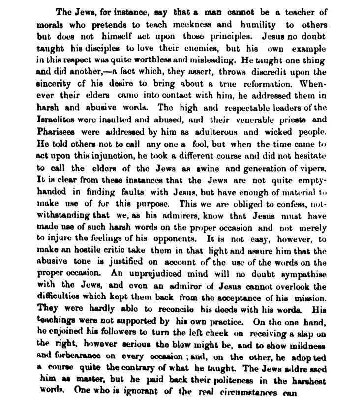 “(Jesus) had the habit of uttering obscenities and frequently using foul language. He used to get angry over petty things. He had no control over his emotions.” (Zamima Anjam-e-Atham, Roohani Khazain , Vol 11 p.289 ).