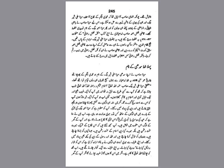 By the way I don,t care about their girls all I wanted is that the girl be married to me and her children to become my heirs, but they wanted me to be be humiliated and be a black faced one, but it is god that can humiliate whoever he wills. They want to put me into burning fire. I wrote to them not to break old relations. Your wife said she don,t care about relation with me she don,t even cared for if my son Fazal divorce Izzat Bibi. She said she is with her brother Ahmad Baig. She said she does not even care if this man (MGAQ) dies somewhere. Why did he survied while dying and wished if i would have died. These are the feelings of your wife reached to me.