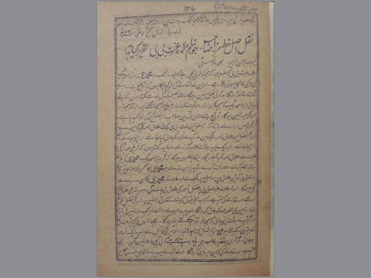 Mother of Izzat Bibi should know that she and family are planning the marriage of Muhammadi Begum in few days. I have sworn upon god that I will break all my terms with them because of this marriage. So I am writing it as a well wisher to persuade your brother to stop this marriage. Do whatever you can. Otherwise I have written to Molvi Nuruddin and Fazal Ahmad to send his Talaqnama (Divorce Deed) to izzat Bibi in case if you people do not stop this marriage plan. If Fazal Ahmad did not send divorce to Izzat Bibi, he would be deprived of right of my inheritance. He may not be considered one of my legal heirs after me and not to receive even a single penny from my property.