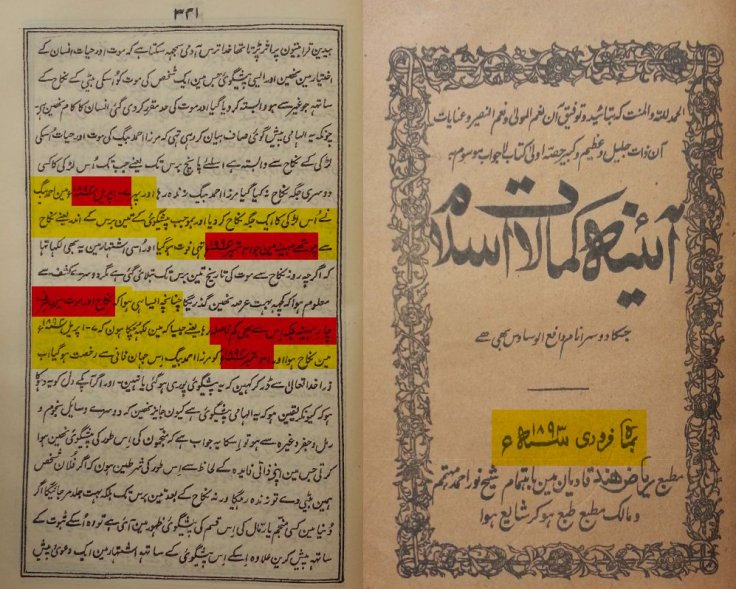 (Kalima Fazal Rehmani Auham e Qadiani, by Qazi Fazal Ahmad Court Inspector Ludhiana. Page 127)